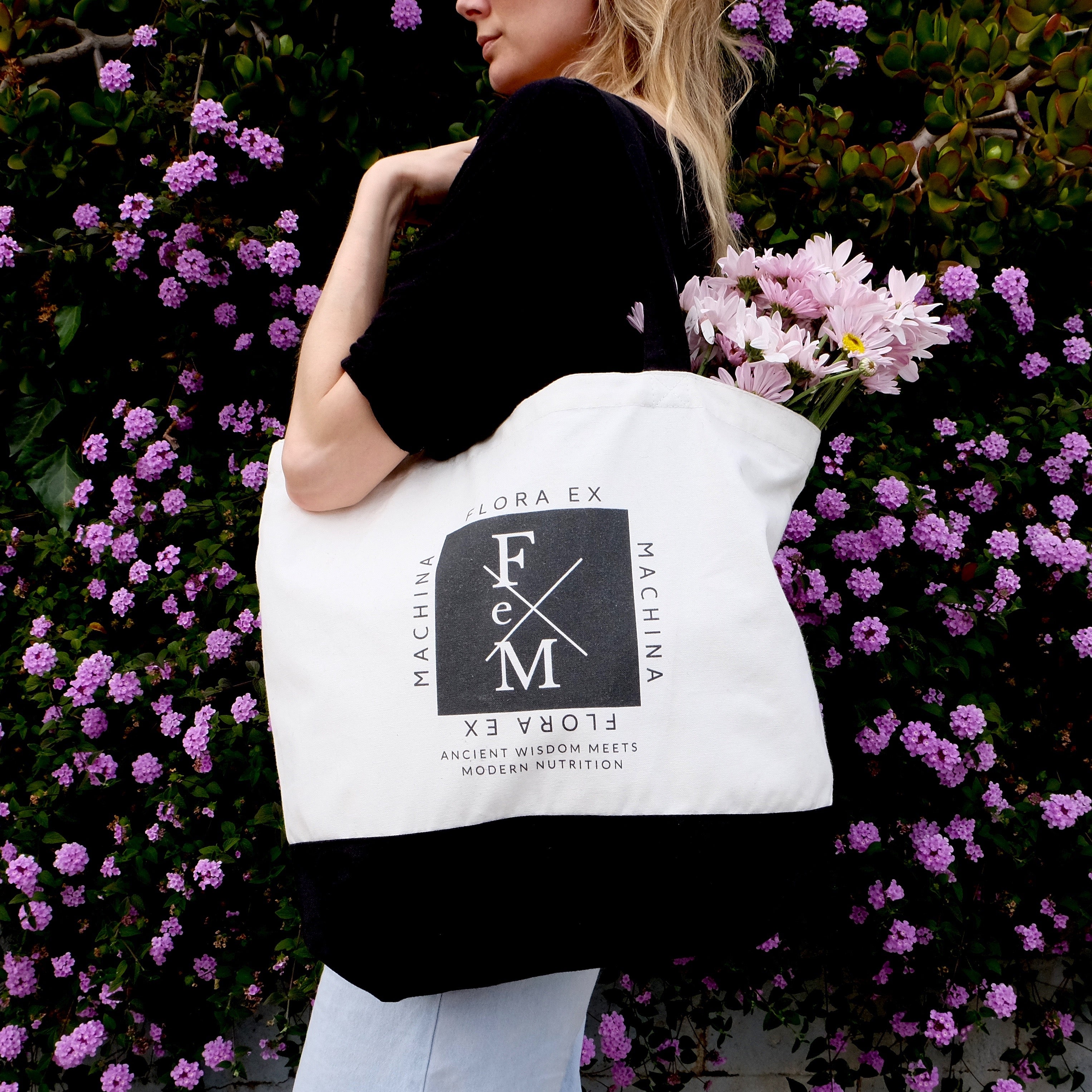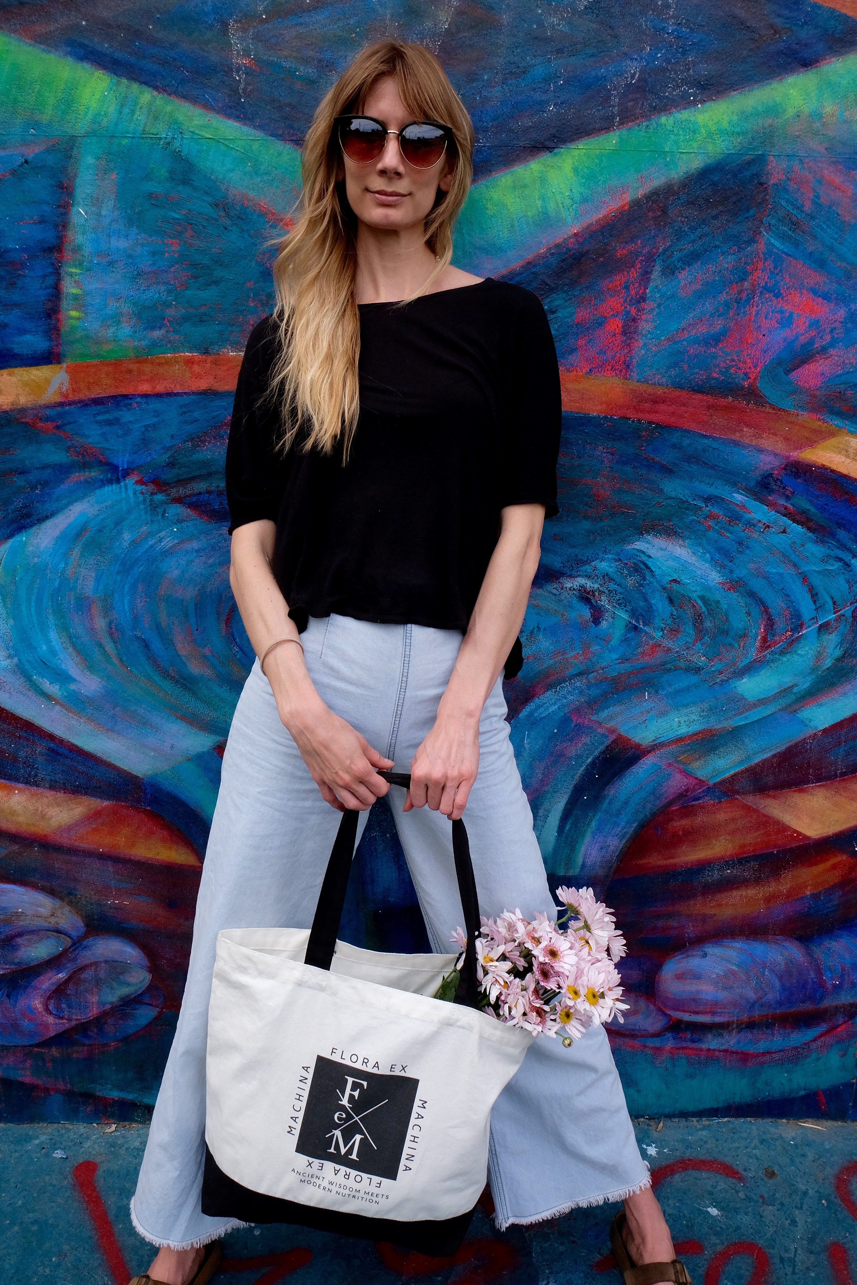 From the farmer's market to the beach, showcase Flora ex Machina with our versatile canvas tote!